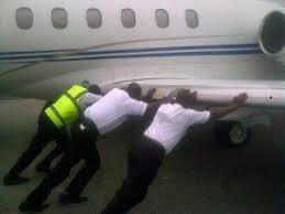 AWESOME PICTURE! In Nigeria, just about, just about anything is possible! Haba, how can, how dare, pushing a plane, where to, Ibadan or London?? Nigeria We Hail Thee!